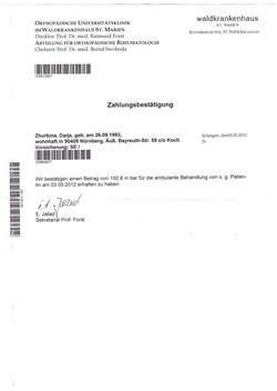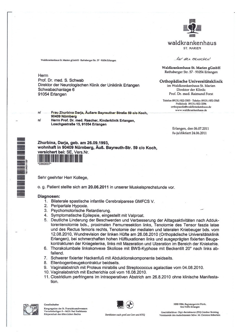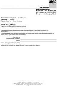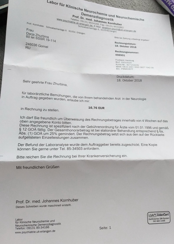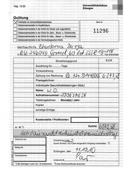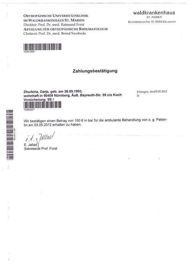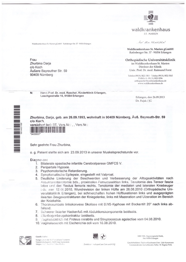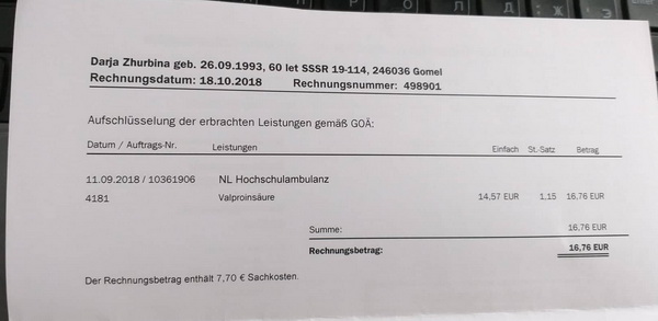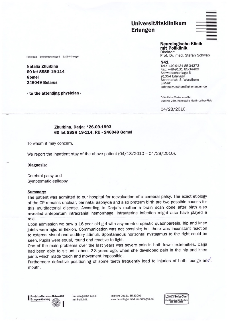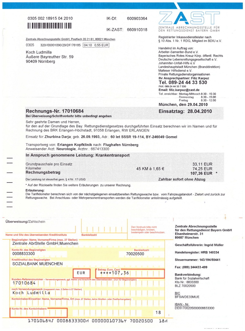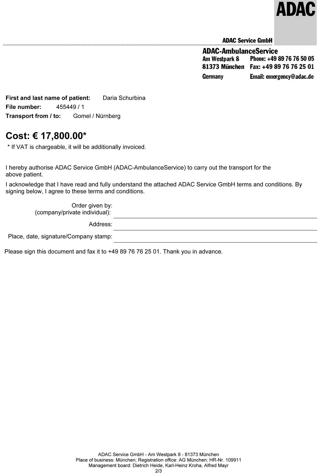 Подтверждение согласия благотворительного фонда Германии на сбор средств для лечения Даши и Счет из клиники