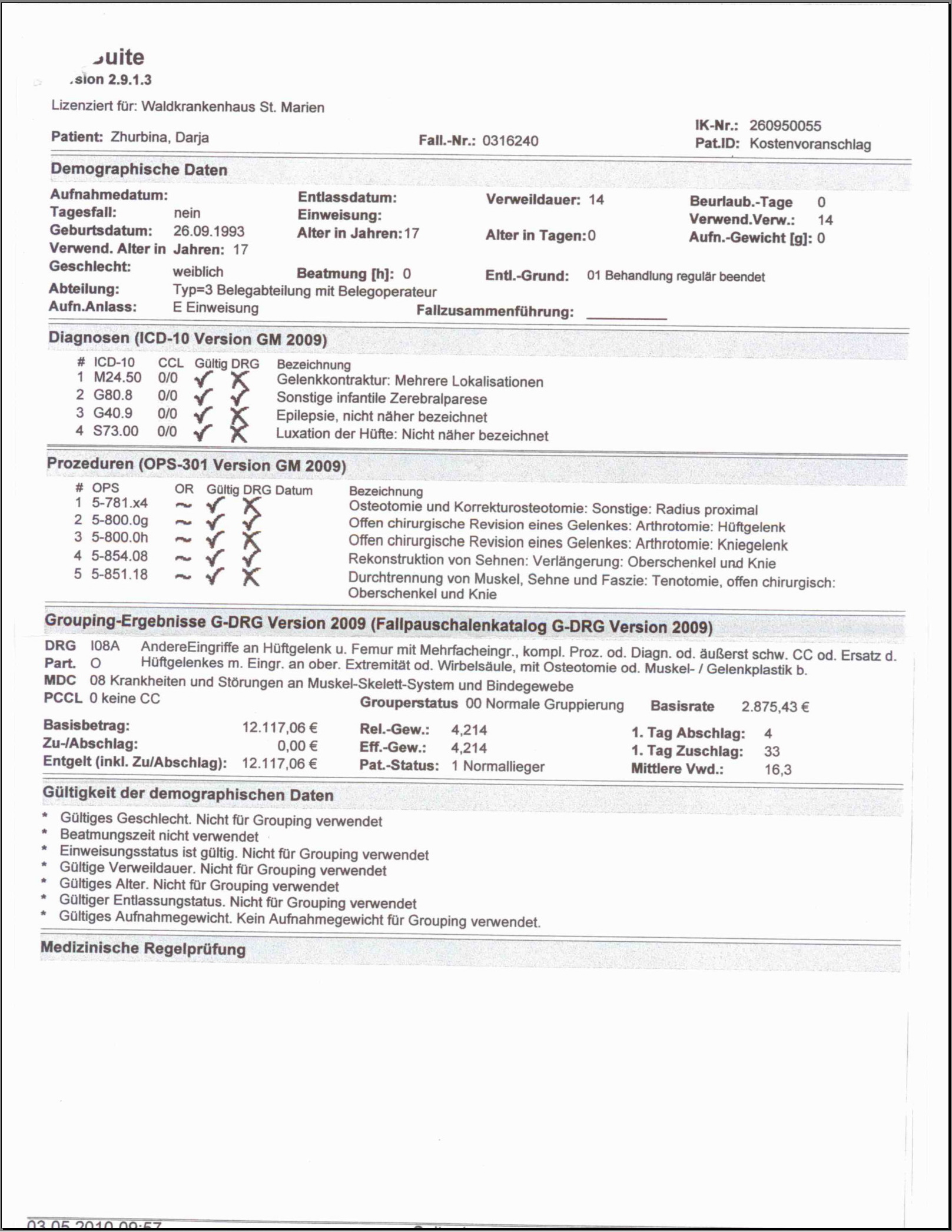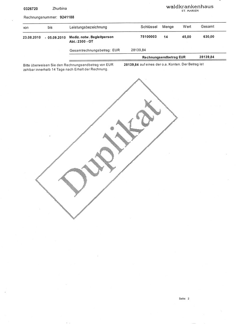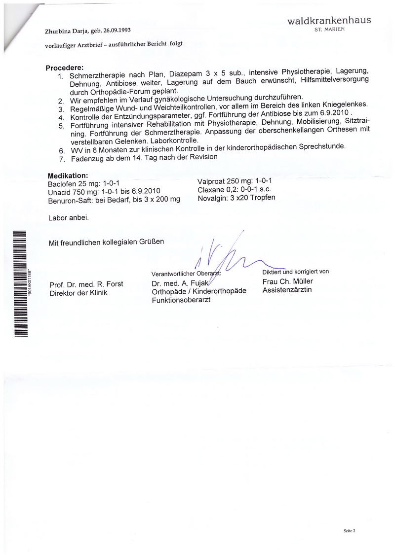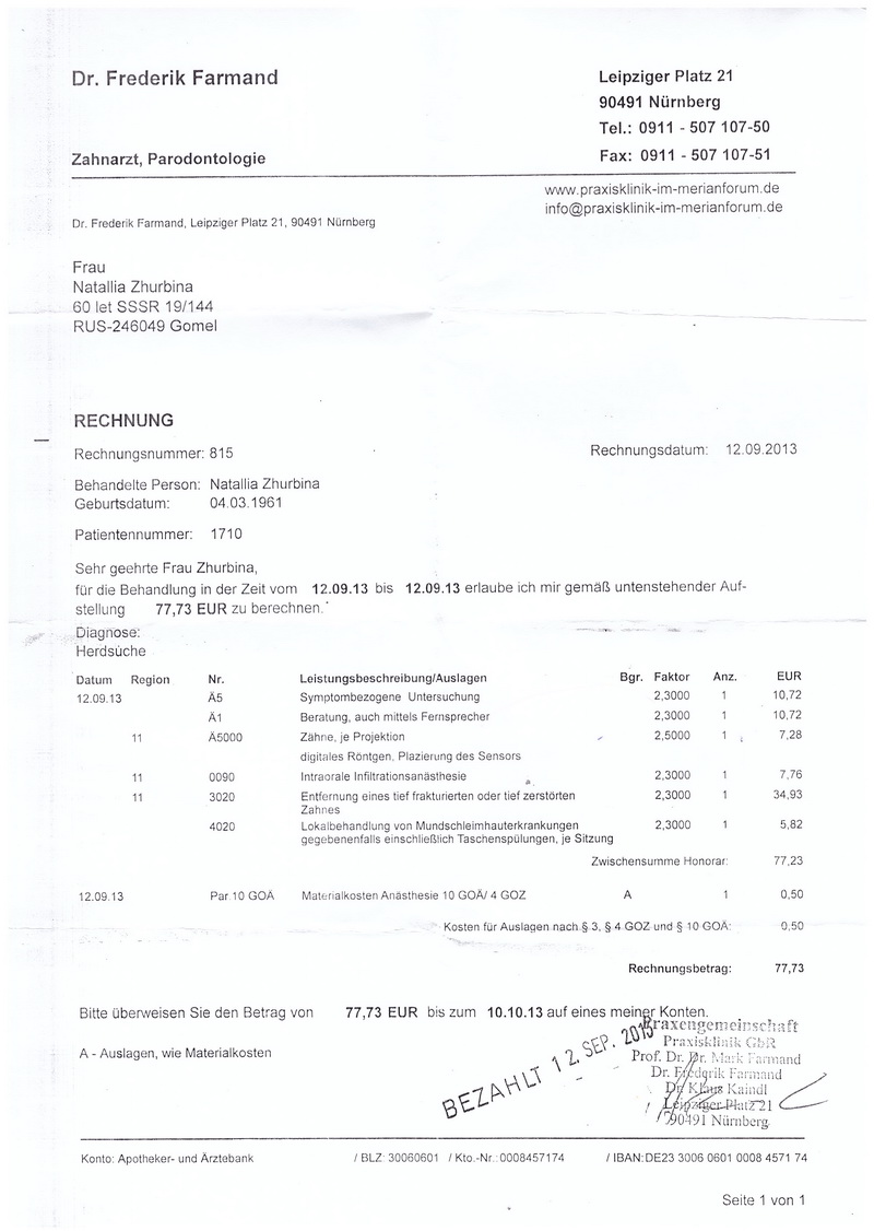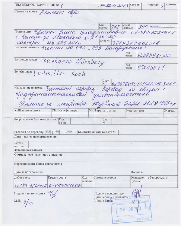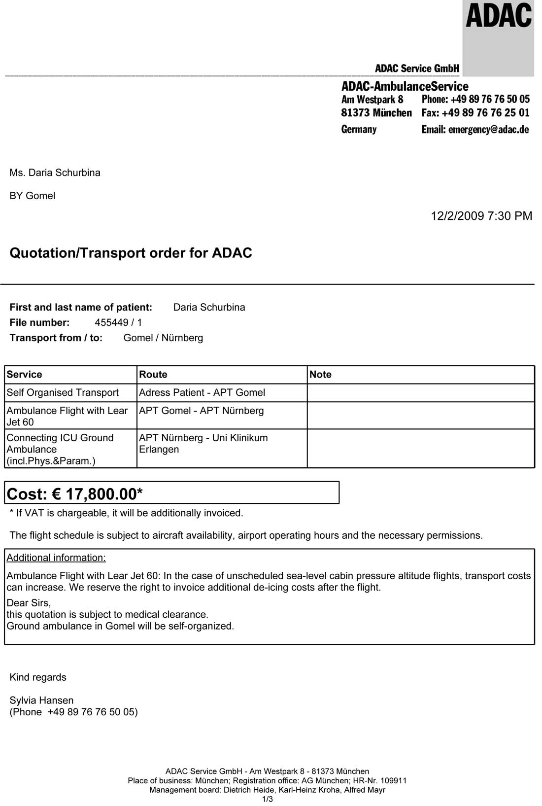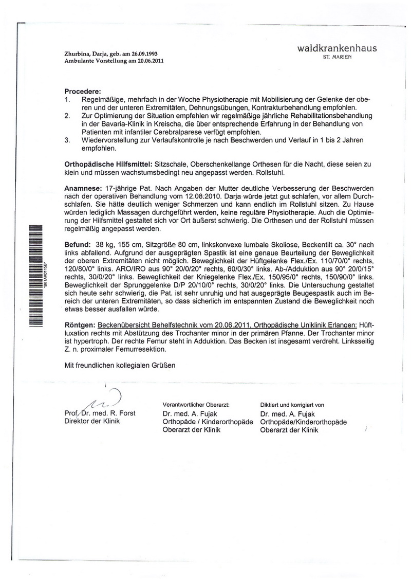 Подтверждение согласия благотворительного фонда Германии на сбор средств для лечения Даши и Счет из клиники