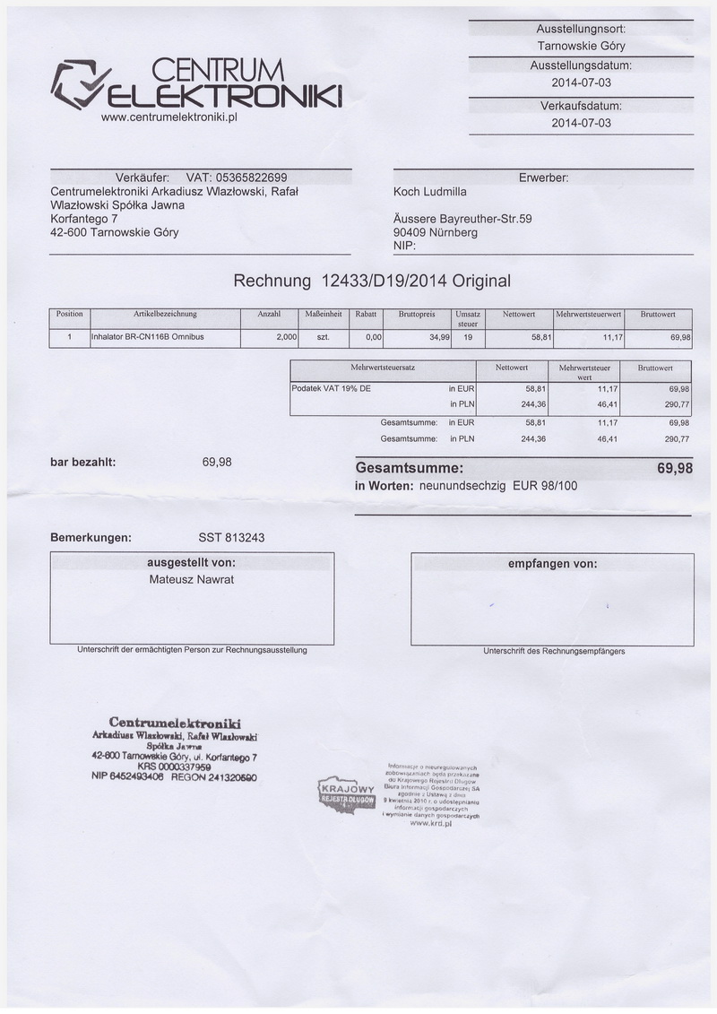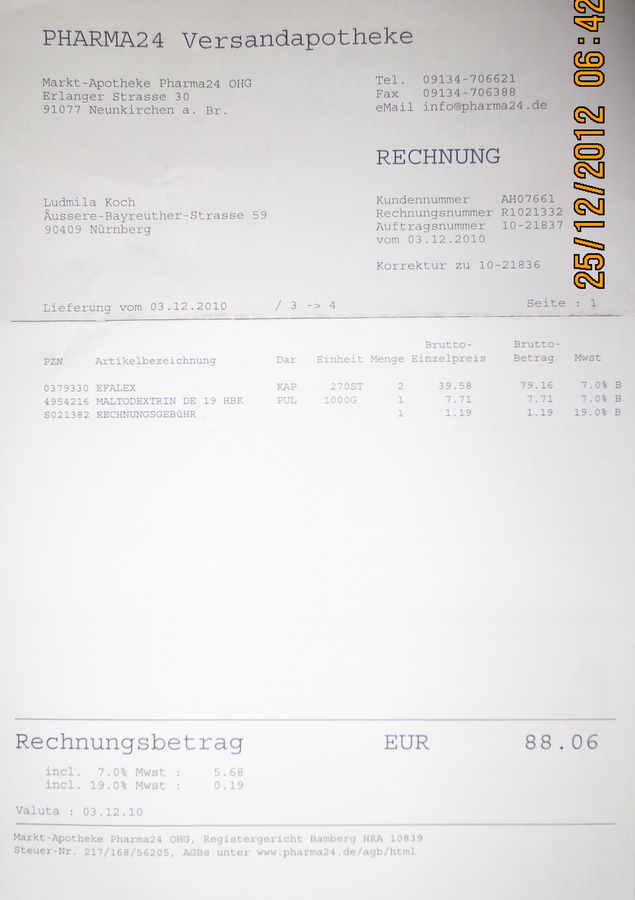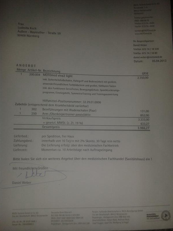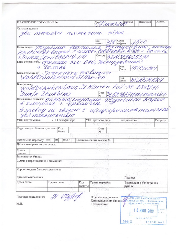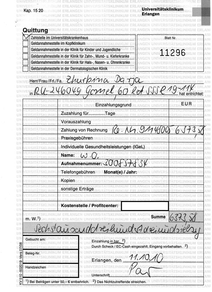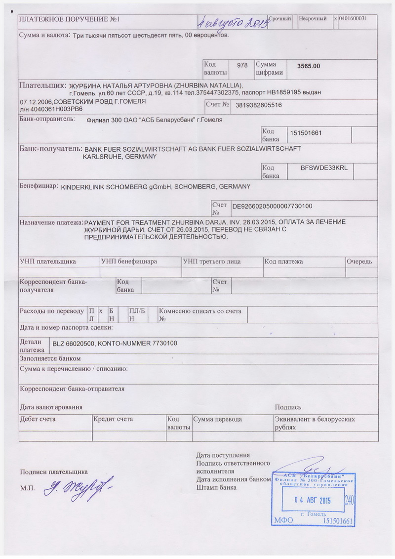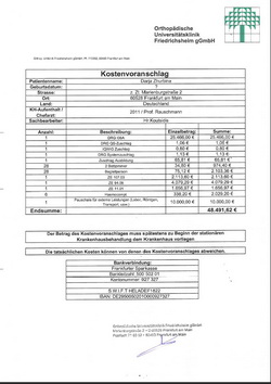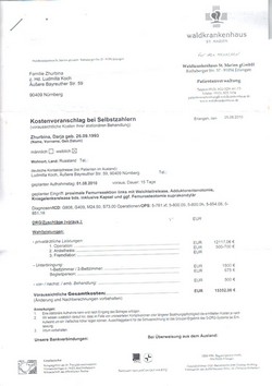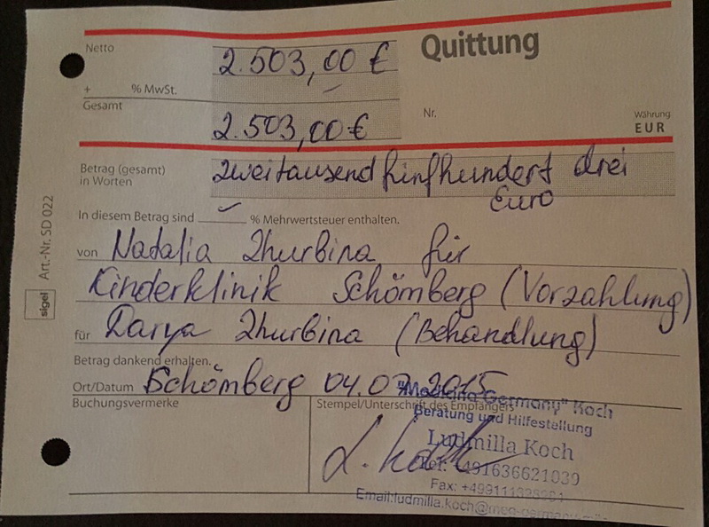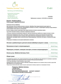 Счет на лечение. В эту клинику мы не попали, так как не смогли собрать необходимую сумму.