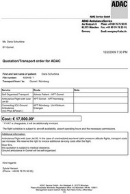 Счет на оплату спецрейса и сопровождения врача и скорой помощи
