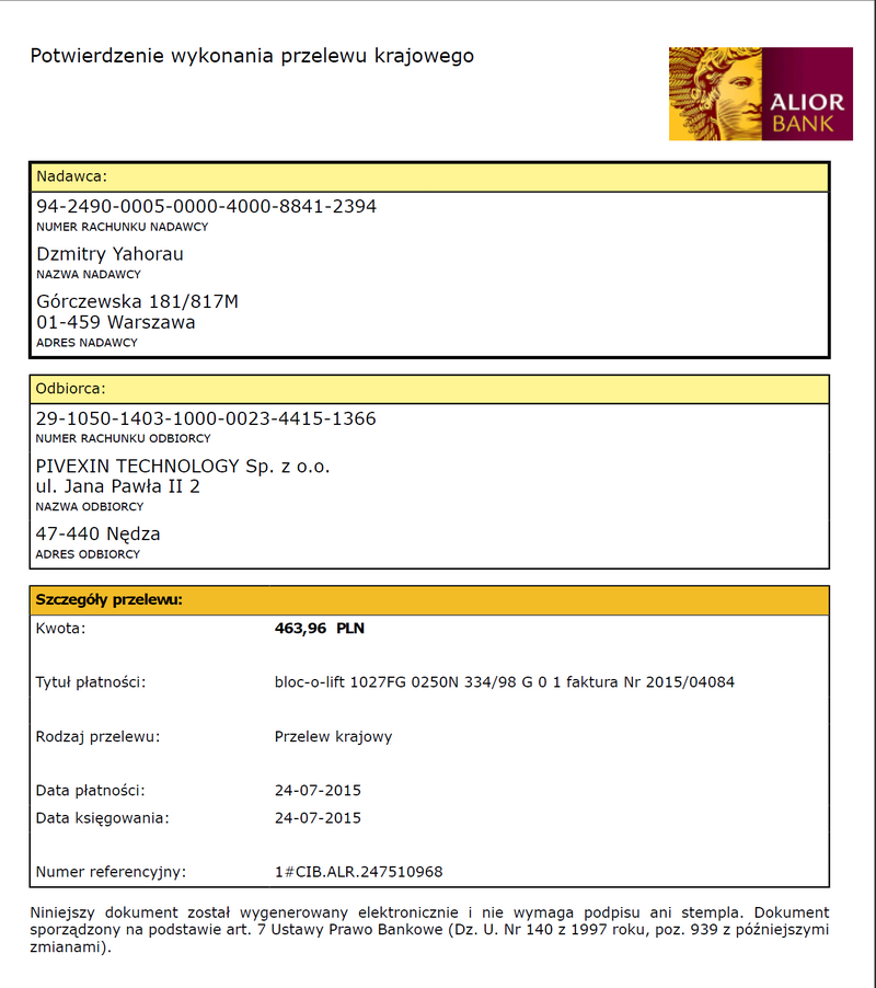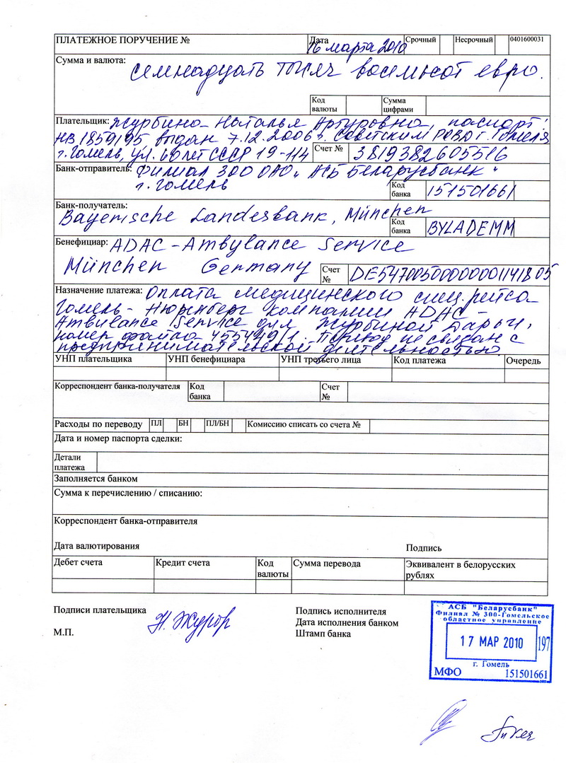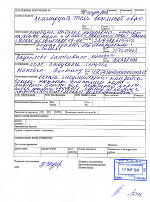 Квитанции об оплате спецрейса и сопровождения врача и скорой помощи